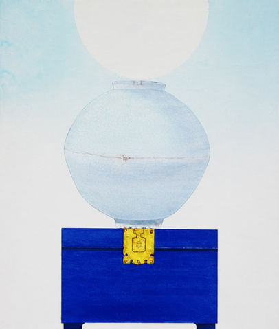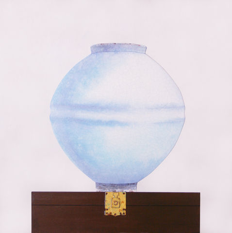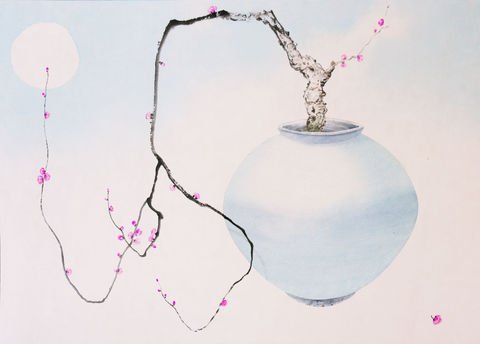 A central theme in Oh's work is the Moon Jar, a traditional Korean porcelain vessel known for its simple yet elegant form. He reimagines these vessels on flat surfaces, employing mixed media to capture their essence while infusing them with contemporary sensibilities. His series "Emptying and Filling" exemplifies this approach, reflecting on concepts of emptiness and fullness, both physically and metaphorically.