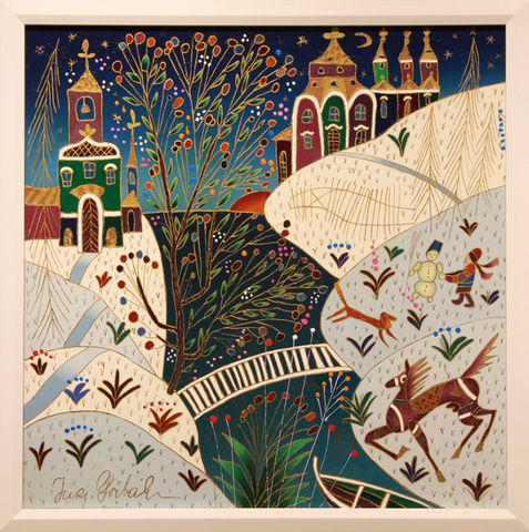 Yuri Gorbachev is a celebrated Russian-American artist renowned for his vibrant, richly detailed works that blend traditional Russian iconography with contemporary expression. Born in 1948 in Uglovka, Russia, Gorbachev’s early exposure to Russian folklore, Orthodox religious art, and the rich cultural heritage of his homeland deeply influenced his artistic vision. His formal training at the prestigious Vera Mukhina Academy of Applied Arts in St. Petersburg laid the foundation for his distinctive style.
